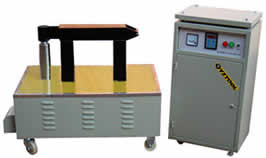 4、時間到或溫度到,主回路斷開,完成退磁動作,撥動升降手柄,轉動軛鐵取下工件安裝。