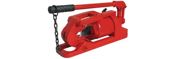 分體式鋼絲繩切斷器,主要?jiǎng)恿υ矗ㄊ謩?dòng)油泵或電動(dòng)油泵),工作油缸,滑軌及切斷刀片等幾大部分組成,它具有結(jié)構(gòu)合理、操作方便、切斷快速、省力等優(yōu)點(diǎn),特別由于采用了分離式結(jié)構(gòu),從而根本上避免了以前因不小心操作造成鋼繩甩彈傷人現(xiàn)象。該切斷器不但可切斷32-52毫米鋼繩,還能切斷20毫米以下規(guī)格的園棒材。該切斷器廣泛用于冶金、礦山、石油、橋梁等工程部門(mén)。